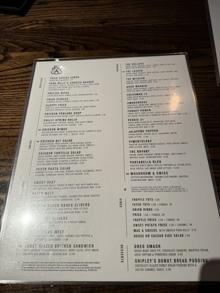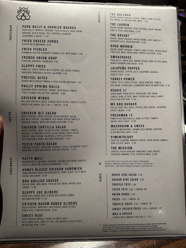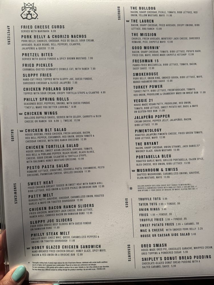 Bulldog Burger - Ridgeland is a bustling eatery in Ridgeland, MS, known for its diverse menu and friendly service. With a focus on sandwiches and burgers, this spot offers a wide range of options, including many vegetarian choices. Visitors can enjoy a variety of appetizers, salads, and sandwiches, such as the Chicken Bacon Ranch Sliders and the Patty Melt. The cozy atmosphere and accommodating staff make for a pleasant dining experience. Customers rave about the flavorful dishes, with highlights like the Mushroom and Bleu Cheese Burger and the Pork Belly Mac and Cheese. The bar menu boasts a nice selection of local brews, adding to the overall appeal. Whether you're looking for a quick bite or a leisurely meal, Bulldog Burger - Ridgeland is a must-visit destination for foodies in the area.